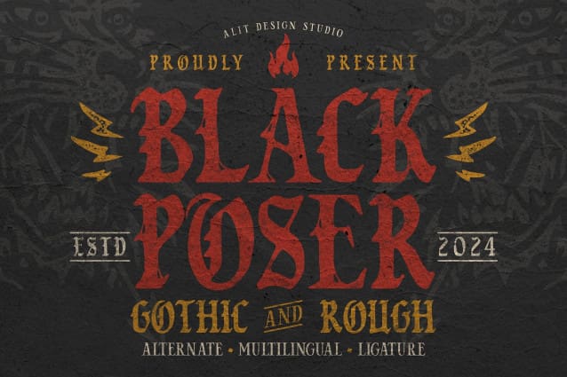 This font is used only for demos (Demo license). If you want to use this font for commercial use please contact: https://creativemarket.com/alitdesign/284339444-Black-Poser-Blackletter-Typeface?u=fontlot123