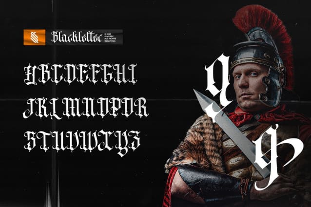 Black Ronge Font, a Blackletter Font is font for you to get your designs with stylist, bold, and modern techno look. It is made in uppercase and lowercase letters which are easy on the eyes and nice to look at, and easy to read. This font is designed to bring your brandings to life and add a touch of modernity, fun and style.