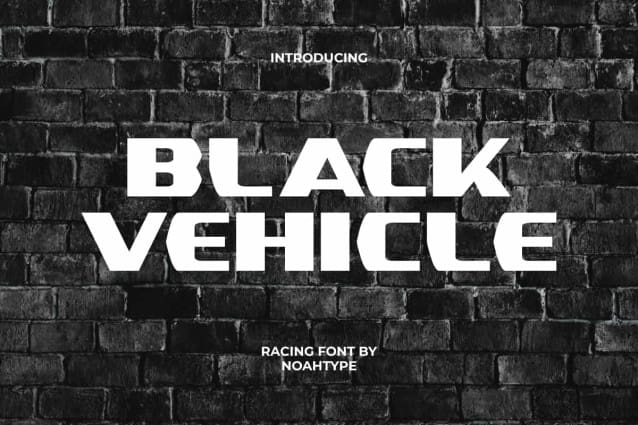 Black Vehicle Font is a bold and versatile sans serif display font by NoahType. This font carries a racing theme with random cut on the letters, but still has a clean and easy-to-read appearance. It will be good for any designs, such as brand image, custom design, invitation, label, marketing material, menu, poster, product packaging, quotes, signage, stationery, web, and many more!