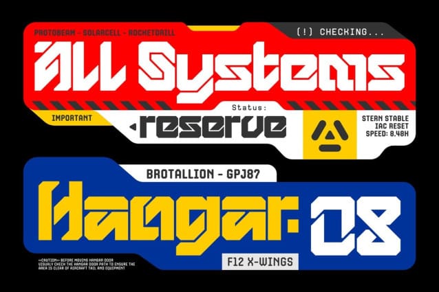 Blackbots Futuristic Font: the cyber dystopia typeface that brings a gritty realism to your mechanized creations. Crafted with meticulous attention to detail, BlackBots is tailor-made to adorn the exteriors of mechs, tanks, or hangars, particularly those with a cyberpunk aesthetic. However, its versatility extends far beyond the realm of cyber dystopia, seamlessly blending into various styles with its adaptable nature.