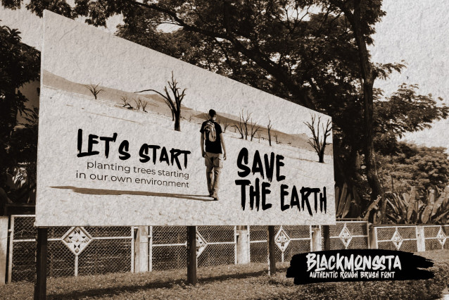 This font is used only for demos (Demo license). If you want to use this font for commercial use please contact: https://almarkhatype.com/black-monssta-authentic-rough-brush-font/