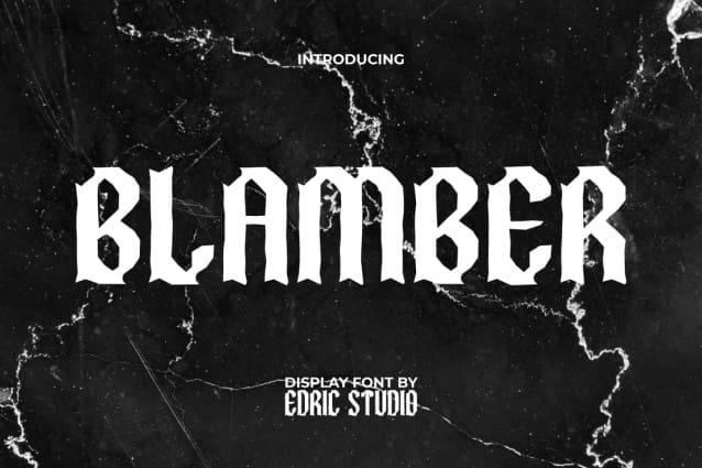 Blamber Font is a blackletter, grunge and classic display font based on the gothic style made simpler and more modern with the support of stylized alternate characters to give more composition. Inspired by the cover of rock ‘n’ roll music in the mid-1960s. Suitable for cover designs, headlines, labels, logos, posters, screen print, signage, stationery, sticker, websites, etc. It will support your unlimited creation to present the desired font appearance.