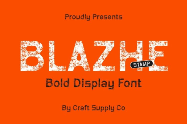 Blazhe Stamp Font This font is a stylish and experimental display sans serif that pushes boundaries with its sharp edges and unconventional brutalist geometry. Designed to break away from traditional smooth forms, this font embraces a stark, architectural look that instantly captures attention.