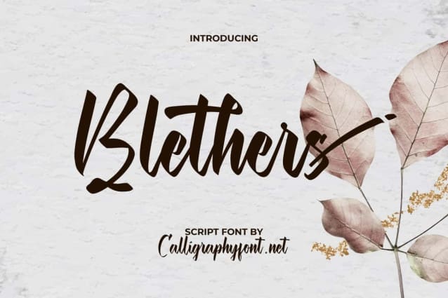 Blethers Script Font is a versatile typeface with a modern aesthetic, it allows you to explore limitless creativity. This font is great for your next business, such as accessories and merchandise, bakery, beauty clinic, cosmetic, fashion, florist, furniture, graphic design, homeware design, hotel, jewelry, makeup artist, restaurant, perfume, photography, printing, publishing, skincare, spa salon, wedding organizer, writer, and anything that requires a beautiful and calm font display.