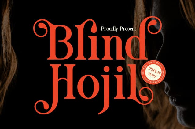 Blind Hojil Font | Display Serif Font, from Denustudios, suitable for any projects such as: logos, branding projects, homeware designs, product packaging, mugs, quotes, posters, shopping bags, t-shirts, book covers, name card, invitation cards, greeting cards, label, photography, watermark, special events, and all your other lovely projects that need a Display Serif Font taste.