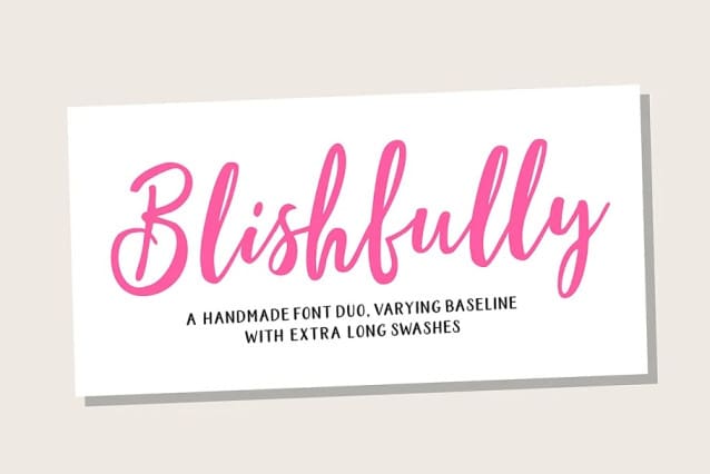 Blishfully Font Duo a sweet handlettered font, casual and dynamic with a dancing baseline. Also available BlishfullySans to help you mix and match it to fit your creative work in harmony. all to add an authentic touch to your designs. perfect for Branding, Logos, Greeting Cards, Wedding Stationery, Quotes etc.