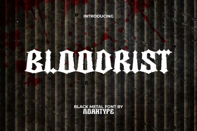 Bloodrist Black Metal Font is a blackmetal black hardrock font with horror theme by NoahType. The characters in this font are made rough and scary so that they can make your design look dominant. It will be perfect for any designs, such as custom design, invitation, signage, label, brand image, cover, marketing material, menu, poster, printing, product packaging, quotes, website, and many more!