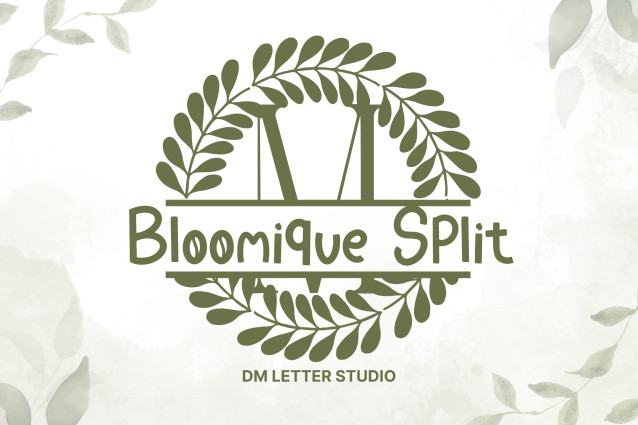Bloomique Split Font is a graceful serif split monogram font that pairs timeless uppercase letters with refined floral illustrations and a clean horizontal divide—ideal for customizing with names, initials, or brand messages. It’s the perfect choice for wedding designs, personalized gifts, Cricut projects, and floral-themed branding.