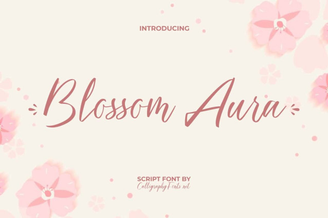 Blossom Aura Font comes with a casual script look with irregular line thickness and makes it feel authentic and expressive. Capable of enhancing any of your works with a dynamic and lively appearance. Perfect for author, beauty product, bridal boutique, craft, fashion, graphic designer, photography, pottery, wedding, writer, and many more.
