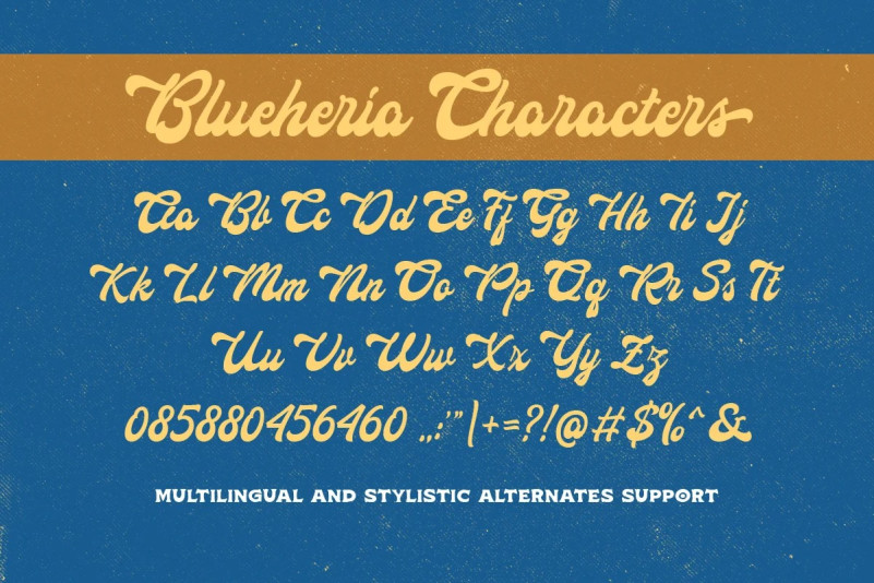 Blueheria Retro Font is bold script which looks great for vintage and adventure theme! This font is also suitable to be applied especially in logo, and the other various formal forms such as invitations, labels, logos, magazines, books, greeting / wedding cards, packaging, fashion, make up, stationery, novels, labels or any type of advertising purpose.