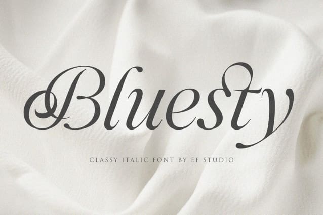 Bluesty Font, a perfect harmony of curves and angles, this font effortlessly elevates your text, lending an air of refinement to your words. Whether for invitations, logos, or printed materials, let this font add a touch of sophistication to your design, making every word a work of art.