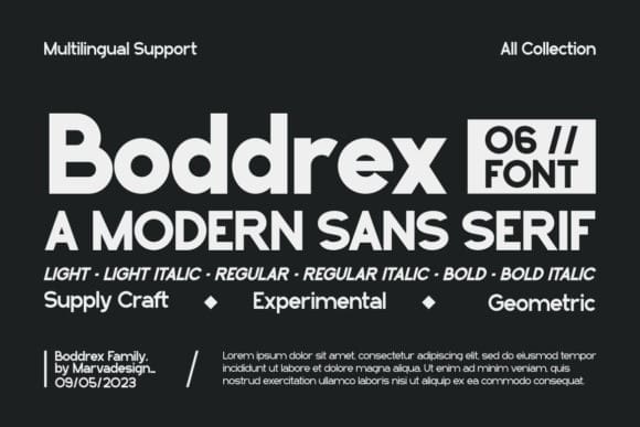 Boddrex Font is a sleek and modern sans-serif font, bringing a clean and contemporary vibe to your projects. With its straightforward design, Boddrex is perfect for creating a polished and professional look in various applications. Whether you’re working on a website, presentation, or any design project, this font’s modern simplicity adds a touch of sophistication. Upgrade your typographic style with Boddrex for a fresh and clean aesthetic that effortlessly fits into the modern design landscape.