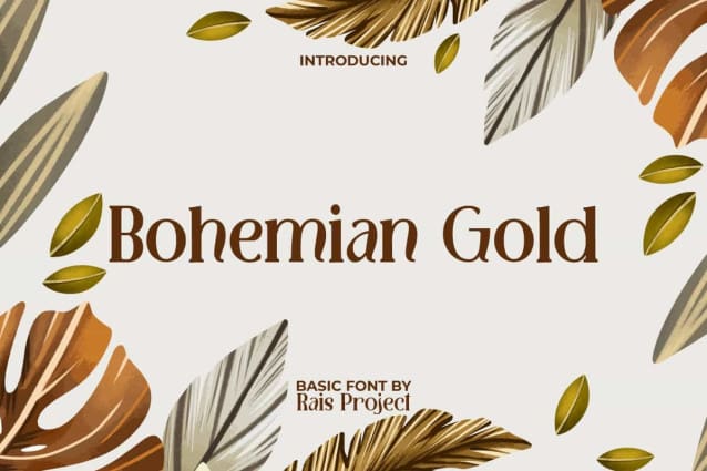 Bohemian Gold Font is a unique aesthetic and stunning display font with little curvy beautiful style. This font has a unique line shape that flows like leaves blown by the wind. It will be good for any designs, such as advertisement, brand image, cover, custom design, flyer, invitation, label, menu, poster, product packaging, quote, signage, stationery, website page, and more!