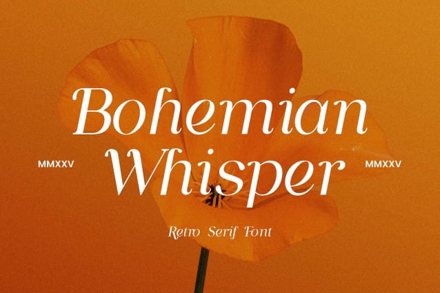 This font is used only for demos (Demo license). If you want to use this font for commercial use please contact: https://creativemarket.com/uicreative/291882143-Bohemian-Whisper-Retro-Serif-Font