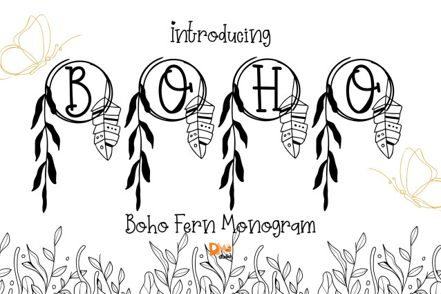 This font is used only for demos (Demo license). If you want to use this font for commercial use please contact: https://dmletterstudio.com/product/boho-fern-monogram/