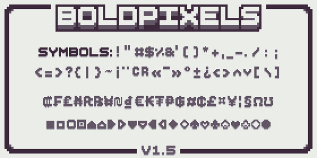 BoldPixels Font is a handcrafted 16 pixels font designed to add a retro touch to your projects. Its clear design makes it perfect for game developers, designers, and creators looking for a unique pixel perfect font.