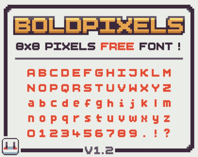 BoldPixels Font is a free 8×8 pixel font for your personal and commercial projects made with care.