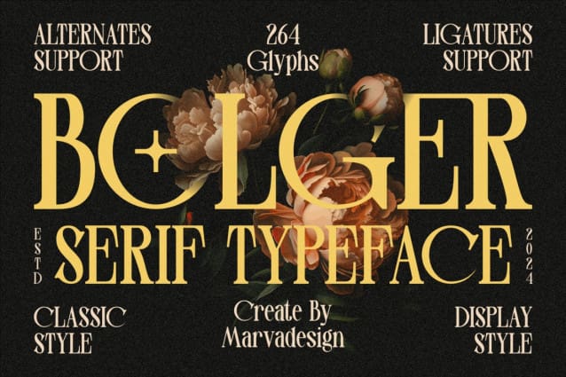 Bolger Font – Serif Display Font Font, authentic display font. The font is suitable for all branding projects like Logo, Template Design, Products and many more. It is exceptional in a wide range of contexts