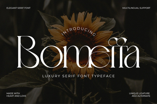 Bomeffa Font is an elegant luxury serif font designed to exude sophistication and class. Perfect for high-end branding, fashion, and premium products, its refined letterforms add a touch of exclusivity and timeless appeal to any design.
