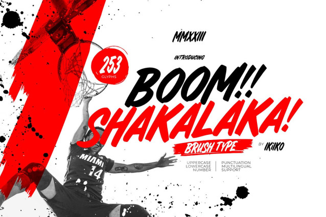 Boom Shakalaka – Brush Type is a expressive brush font with touch of street culture. This type has a bold chatacter type, with shape of street culture. This type is very suitable for making a poster, magazine layout, brand logo, sleeve cover, party flyer, quotes, or simply as a stylish text overlay to any background image.