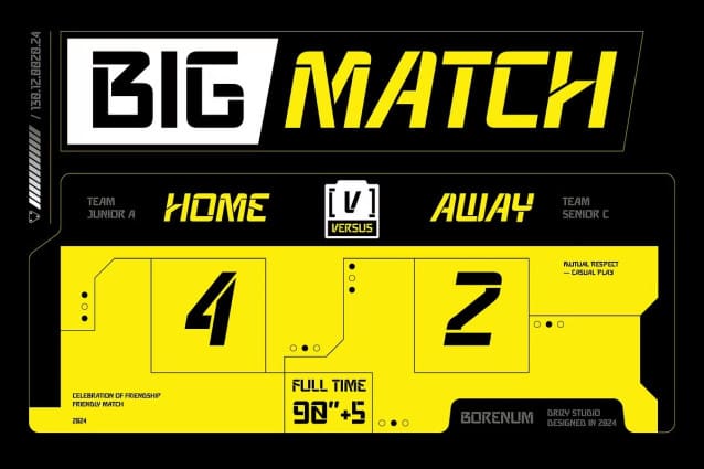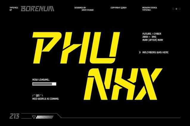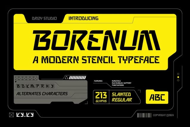 Borenum Font is a bold and dynamic typeface crafted to elevate your Esports Designs. With it’s sharp stencil cuts and sleek, modern appeal, this font exudes power, precision, and energy perfect for gaming logos, team branding, tournament posters, and more. It’s versatile structure allows you to create captivating titles and eye-catching layouts that resonate with competitive and tech savvy audiences. Unleash your creative prowess and make a statement with Borenum Font, the font designed to dominate the digital arena!