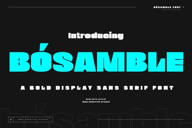This font is used only for demos (Demo license). If you want to use this font for commercial use please contact: https://ibracreative.com/index.php/product/bosamble-a-bold-display-sans-serif/