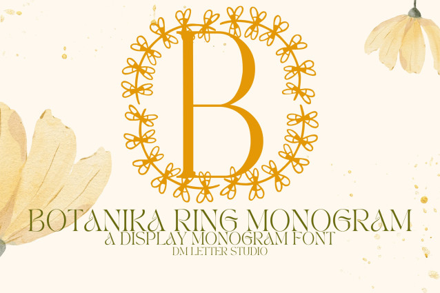 This font is used only for demos (Demo license). If you want to use this font for commercial use please contact: https://dmletterstudio.com/product/botanika-ring-monogram/