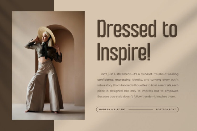 Bottega Font is a modern display sans with a luxury-driven aesthetic. Characterized by elegant spacing and high contrast shapes, it’s perfect for upscale branding, fashion logos, and editorial titles. Bottega radiates refined simplicity with a touch of artistic flair.