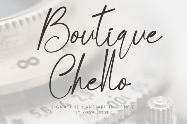 Boutique Chello Font is a signature handwritten font. It comes with capital letters, lowercase letters, signature, numbers, punctuation, and multilingual support. Perfect for invitations, weddings, Christmas, winter, Valentine’s, birthdays, Thanksgiving, posters, summer, spring, and more.