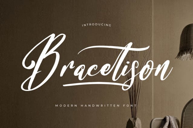 Bracetison Script Font – Modern Handwritten Font , from Letterena, is a Luxury Script font, suitable for any projects such as: logos, branding projects, homeware designs, product packaging, mugs, quotes, posters, shopping bags, t-shirts, book covers, name card, invitation cards, greeting cards, label, photography, watermark, special events, and all your other luxury and beautiful projects that need a Luxury serif taste.