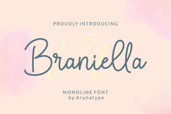 Braniella Script Font is a dainty, flowing handwritten font. Sweet and playful, this font is great for logos, titles, posters, magazines, books, comics, or any creative design project.