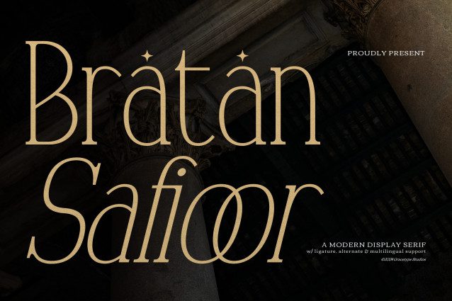 This font is used only for demos (Demo license). If you want to use this font for commercial use please contact: https://gracetypestudio.com/bratan-safioor-modern-display-serif/