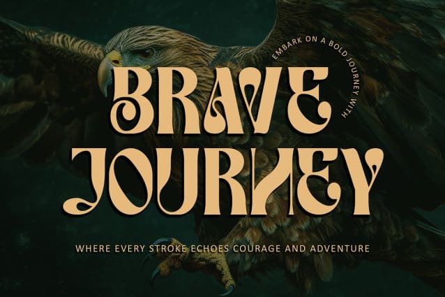 Brave Journey Font, a captivating serif font that seamlessly fuses bold elegance with distinctive character forms. Tailored for a variety of design projects, from adventurous product packaging to dynamic branding, this font’s PUA encoding ensures effortless access to an array of unique glyphs and swashes. Brace yourself for exceptional outcomes as you infuse your creative endeavors with the daring spirit of “Brave Journey.”