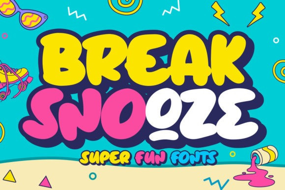 Break Snooze Display Font is a cool and bubbly display font. It embodies playfulness and authenticity and is the perfect choice for any children activity or school project.