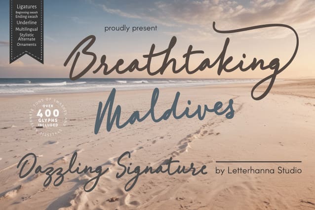 Breathtaking Maldives Font, a bold signature font designed to make every word stand out. With its confident strokes, this typeface captures the essence of sophistication and modern charm.