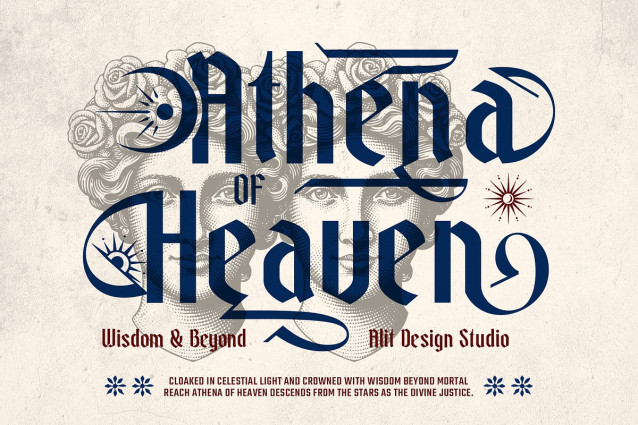 Bright Horse Font is a striking typeface that masterfully fuses the timeless elegance of traditional blackletter with the commanding presence of bold sans-serif influences. Designed by Alit Design Studio, this font reimagines medieval aesthetics through a modern lens, offering a unique blend of historical charm and contemporary edge.