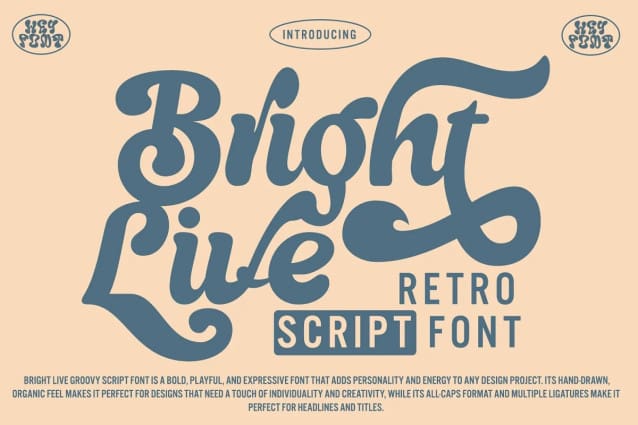 -Vintage Style: Bright Live Retro Script font captures the essence of the golden age of typography with its retro-style design. It is perfect for creating vintage posters, product packaging, branding, and more.