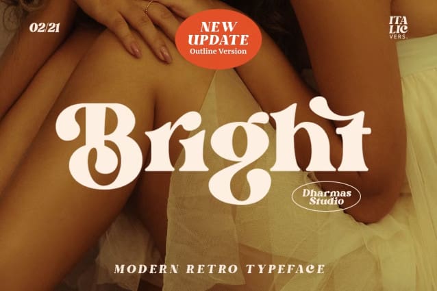 Bright Retro Font is made for personal use. Get the full version of the fonts if you want to use it for commercial purposes by purchasing the licenses here: https://creativemarket.com/dharmas/5888176-Bright-Modern-Retro-%28New-Update%21%29?u=fontlot123