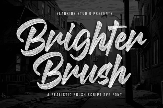 Brighter Brush Typeface, a realistic brush script font is made for any professional project branding, such as logotype, comic, watermarks, poster, branding, promotions, product packaging, etc. Every letter has a realostic brush style.