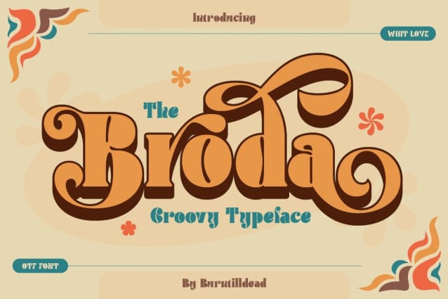 Broda Font – retro typeface! Its thick curves and playful strokes add a groovy and timeless classic touch yet aesthetic to any project design, taking you on a nostalgic trip to the swinging 60s and 70s. Get ready to unleash your inner hippie and spread some retro vibes in modern era!