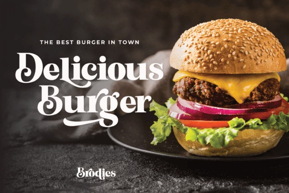 Brodiesfont is perfect for headlines, magazines, logotypes, food packages, advertising, and many others