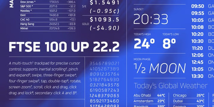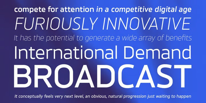 Brokman Sans Serif Font Family is a contemporary sans serif designed to bring clarity and originality to brand related projects. The open apertures and large x-height help provide a fresh aesthetic with an easy, fluid texture across design layouts. While it’s squarish proportions are balanced with subtle rounding achieving a carefully modulated and textured feel in longer text scenarios. Its weight-range allows great flexibility, making the typefaces suitable for a variety of media applications including apps, brand identities, broadcast, gaming and the web. Details include 430 characters, seven weights each with true italics, manually edited kerning and Opentype features.