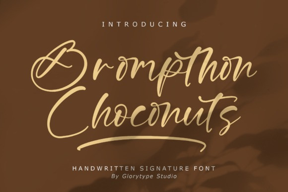 Brompthon Choconuts Script Font is a dazzling script font. This font is neatly crafted and highly detailed. Whatever the topic, this font will be a wonderful asset to your font library, as it has the potential to enhance any creation. This font is PUA encoded which means you can access all glyphs and swashes with ease!