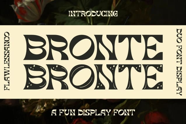 This font is used only for demos (Demo license). If you want to use this font for commercial use please contact: https://creativemarket.com/Flawlessandco/92024985-Bronte-Fun-Display-Font?u=fontlot123