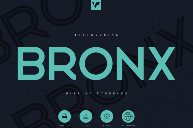 Bronx Font is casual, clean typeface loaded with 6 different styles. Very versatile font that works great in large and small sizes.