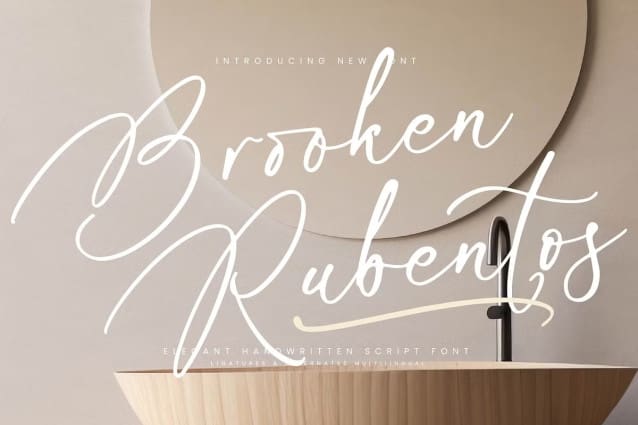 Brooken Rubentos Font – Elegant Handwritten Script Font, from Integritype Studio, perfect for any project like: logos, branding projects, homewares designs, product packaging, mugs, quotes, posters, shopping bags, t-shirts, covers books, business cards, invitation cards, greeting cards, labels, photography, watermarks, special events and all your other luxury projects that require a premium taste.