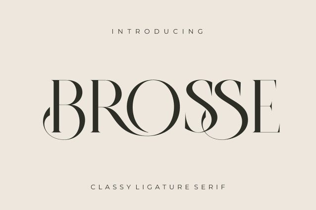 BROSSE FONT Classy Ligature Serif inspired by the famous minimalist logo perfect for the purposes of designing templates, brochures, videos, advertising branding, logos, invitation, layout design, elegant crafting, beauty design and other