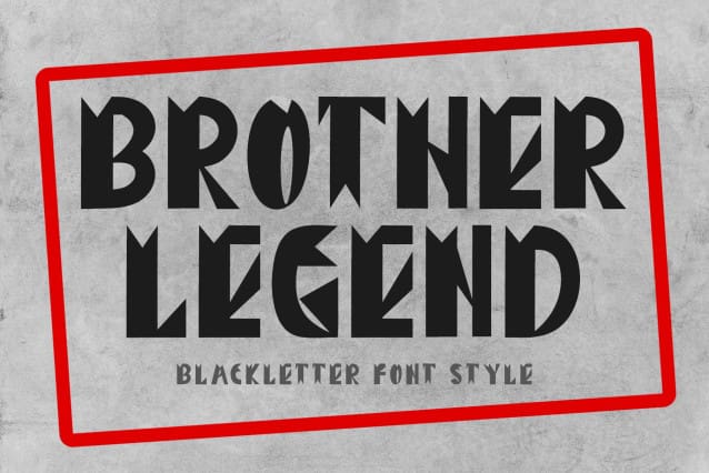Brother Legend Font is an elegant blackletter font. It comes with capital letters, lowercase letters, numbers, punctuation, and multilingual support. Perfect for Halloween, Christmas, banners, branding, music concerts, movie titles, action movies, book titles, logos, product branding, stickers, and more.