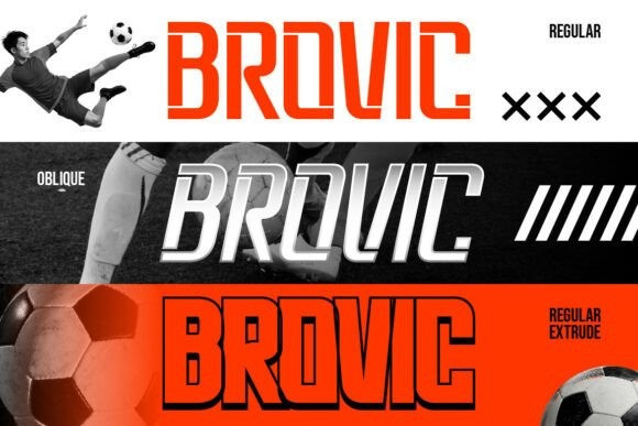 Brovic comes with multiple styles (Regular, Oblique, Inline, Extrude, and more), making it super flexible for striking headlines, sporty graphics, and futuristic branding. Want something loud? Use the extruded version. Want something sleek? Go with Inline. Mix and match — the vibe stays strong.