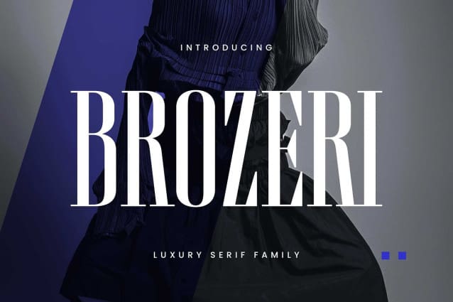 Brozeri Font is a condensed serif typeface with bold contrast and striking contours. Its firm, eye-catching serifs bring a sense of elegance and authority to any design.
